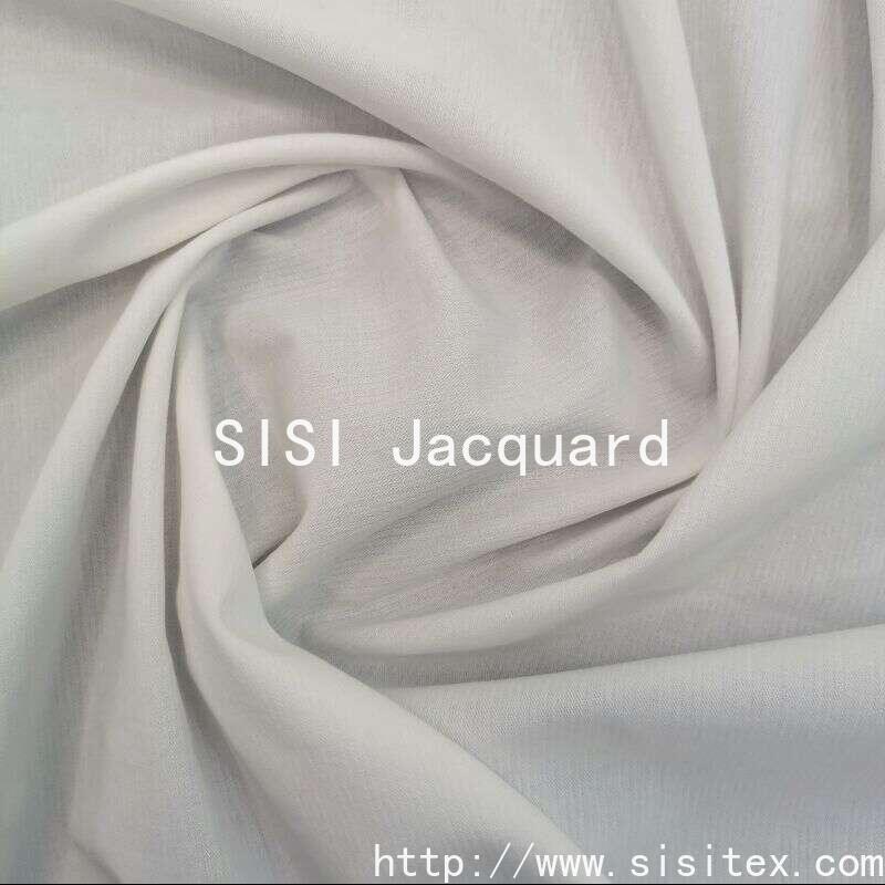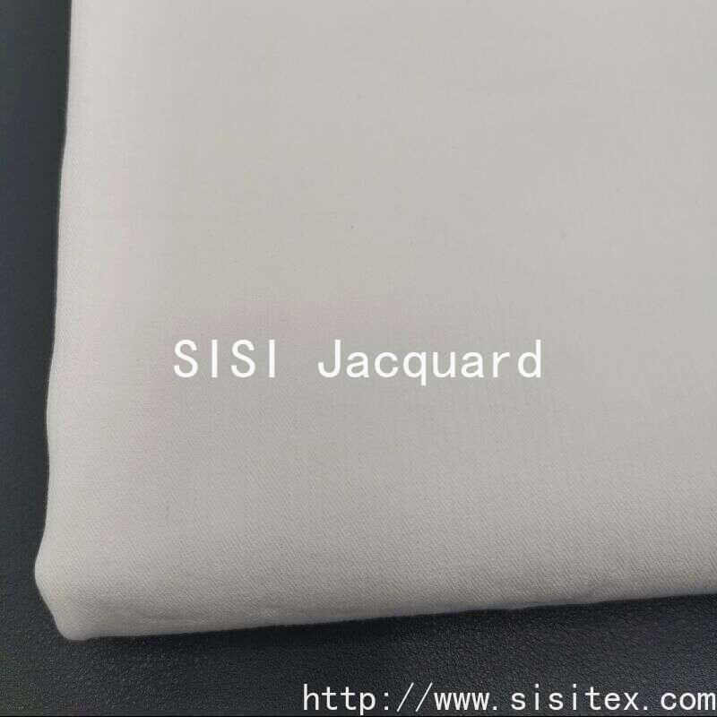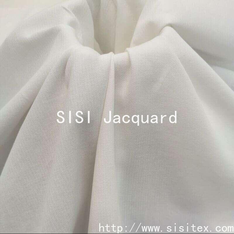 This "Sisi" cotton toothpick strip jacquard fabric is made from carefully selected JC32 combed cotton yarn. It is of superior quality. The fabric is created through a unique weaving technique, presenting a fine and orderly vertical "toothpick strip" texture. It also incorporates a simple and modern geometric jacquard pattern, making the fabric texture rich and three-dimensional, full of design sense. The weight is 144g/m², with a soft and firm hand feel, excellent draping, and it retains the skin-friendly and breathable properties of cotton while providing good silhouette expression for the garment. The pure white tone is classic and versatile, highlighting the details of the texture and pattern. Whether used to make shirts or suits that exude a professional style, or to create home bedding with a minimalist style, it can demonstrate the delicacy and style brought by high-quality fabric. It is the ideal choice for designers and craft enthusiasts who pursue fabric texture and love modern minimalist style.