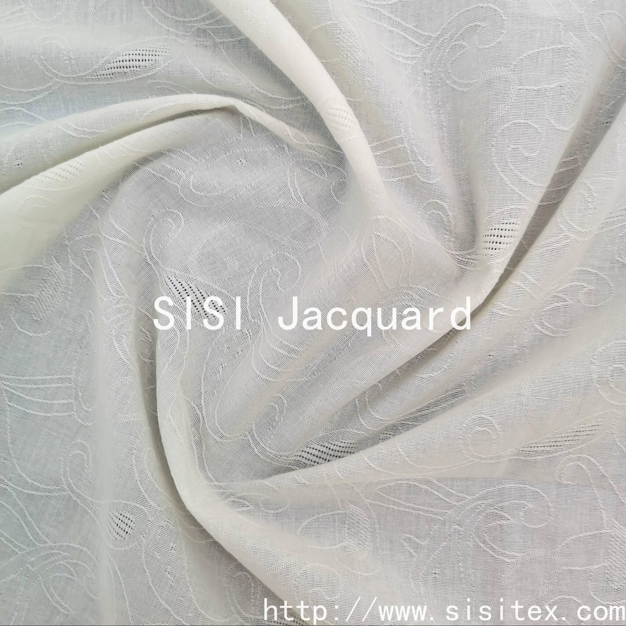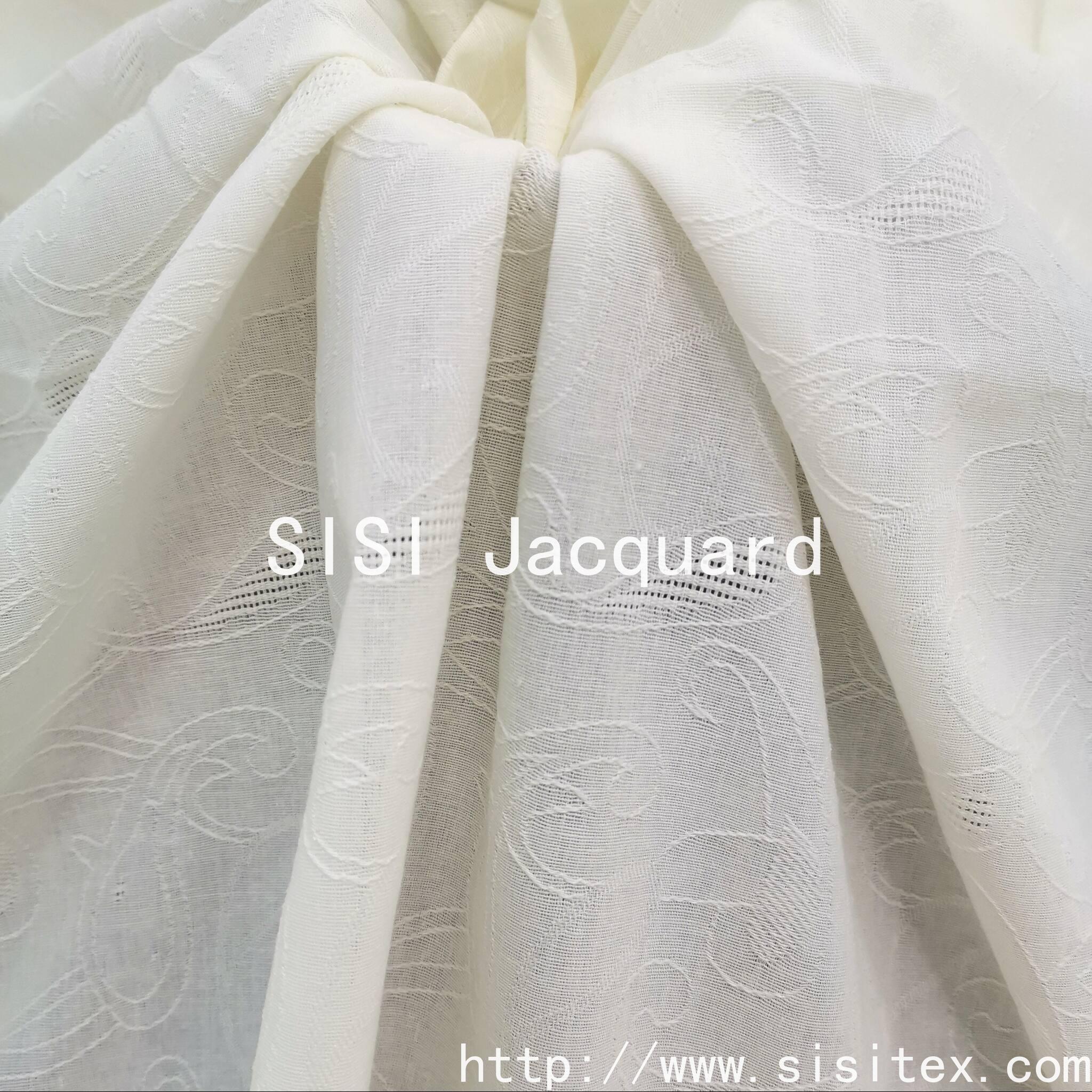 This "Sisu" all-cotton walnut flower jacquard fabric features the classic walnut flower (Paisley) pattern meticulously woven using jacquard technology onto a fine pure cotton base fabric. The walnut pattern is elegantly curled and has a flowing and exotic feel, serving as a timeless fashion symbol. The fabric is made from 60*21 high-count cotton yarn, with a lightweight and soft texture, weighing only 101g/m². It has a smooth touch and excellent breathability, making it an ideal fabric choice for spring, summer, and autumn. The pure white background highlights the exquisite walnut flower pattern clearly, preserving the retro charm while adding a fresh and simple modern touch. Whether used to make a vintage and artistic shirt, an elegant dress, or for home soft furnishings, it can infuse the work with unique cultural taste and fashion appeal. It is an excellent choice for designers and craft enthusiasts who love retro elements, seek comfortable texture and fresh style.