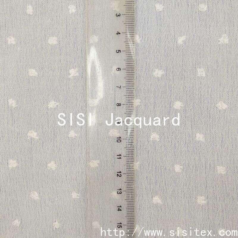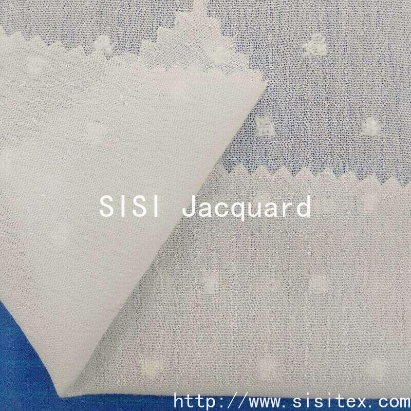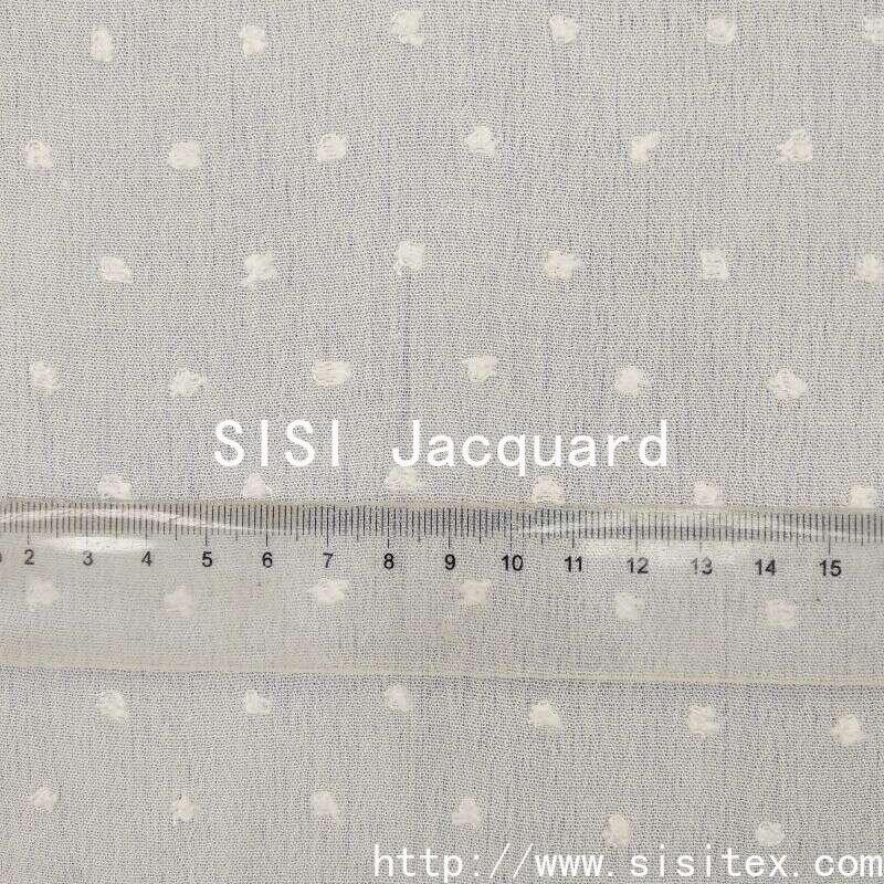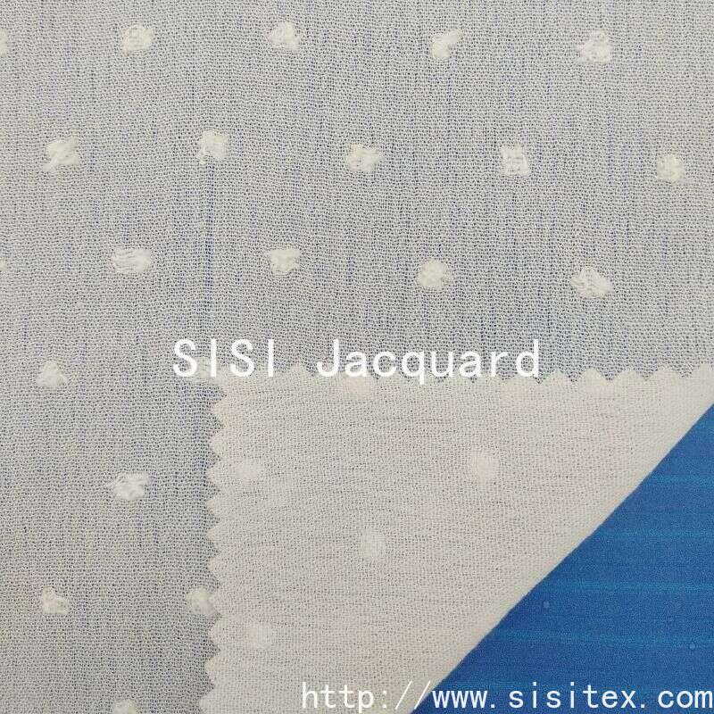 This "Sisi" cotton crepe jacquard fabric is made of high-quality artificial cotton. It is crafted through exquisite cutting and jacquard techniques to create a three-dimensional and delicate texture of patterns. The surface of the fabric features a unique small ball jacquard pattern, providing a soft and comfortable touch. It also combines visual artistic appeal with skin-friendly wearing properties. The fabric has a moderate weight and good breathability, making it suitable for making light summer clothing.