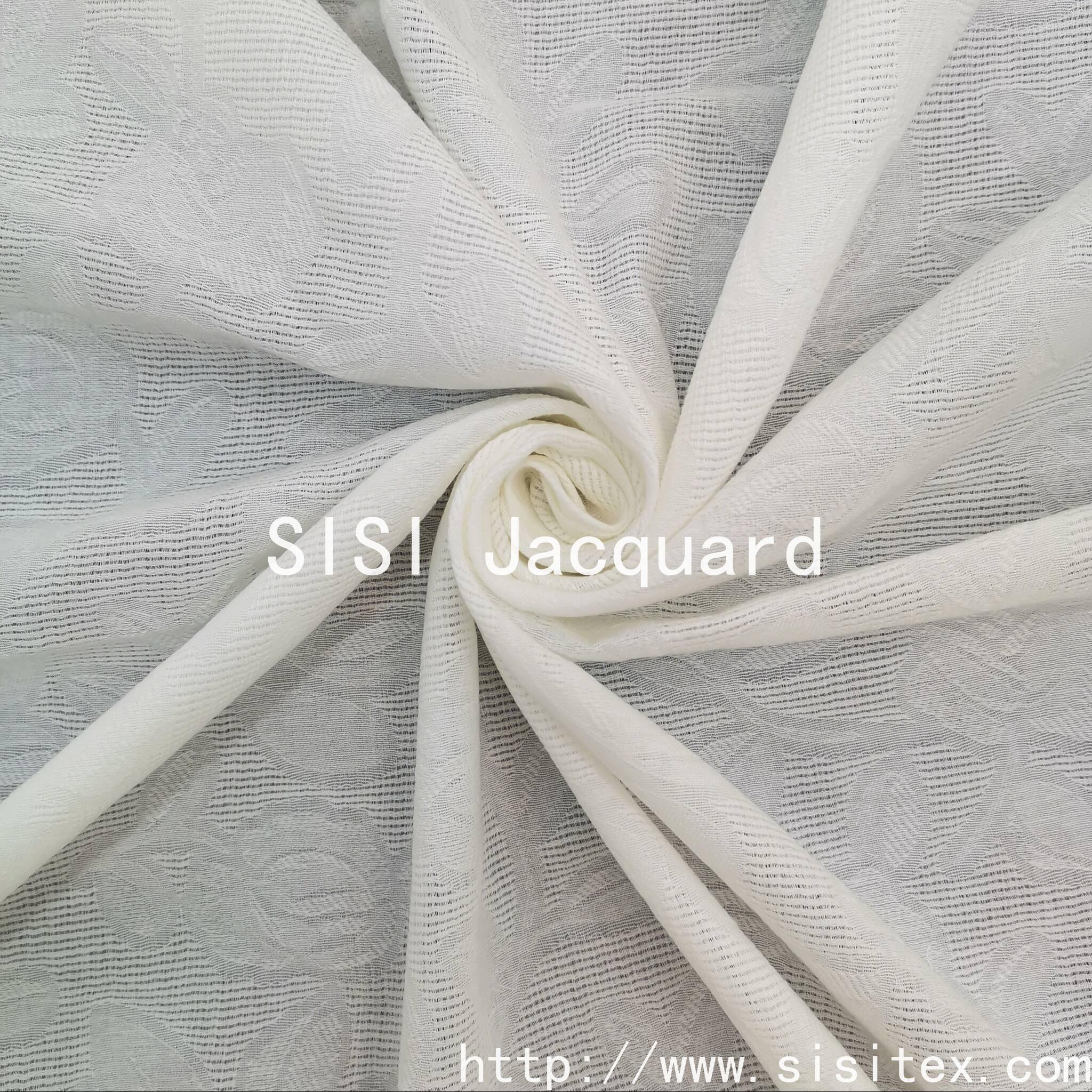 This "Sisi" brand all-cotton mesh rose flower jacquard fabric is made of 100% pure cotton. It combines exquisite mesh jacquard craftsmanship to vividly present a three-dimensional rose flower pattern. The fabric is soft and breathable, and the flower part is formed through precise weaving to create a natural mesh effect. It not only retains the skin-friendly characteristics of pure cotton but also adds a romantic and transparent visual layer, possessing a strong artistic and airy quality.