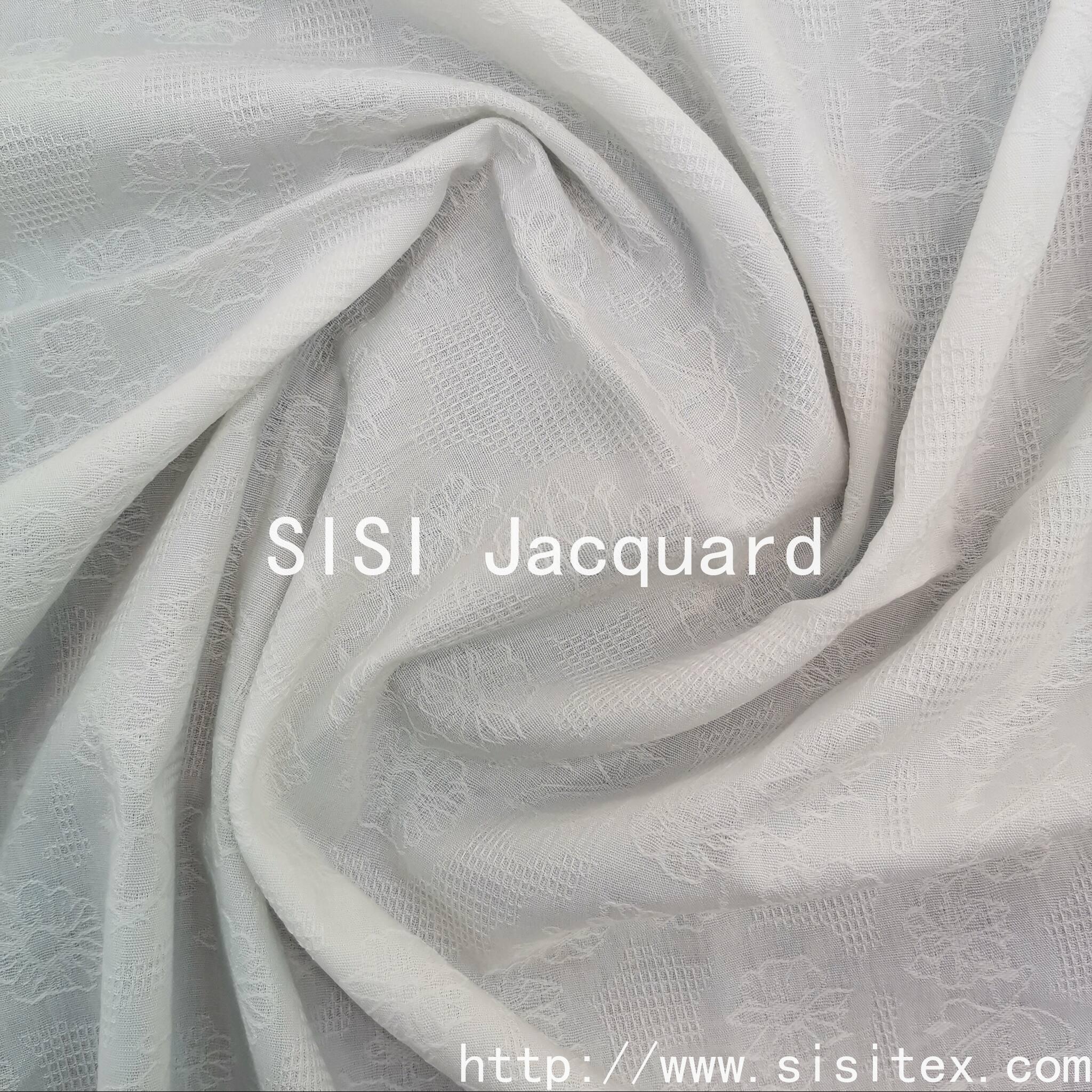 The brand-new "Silvia" all-cotton mesh flower jacquard fabric is made of 100% pure cotton. It features a delicate mesh structure as the base, combined with exquisite flower jacquard craftsmanship, creating a distinct three-dimensional flower pattern effect. The fabric is soft and comfortable to the touch, with breathable and lightweight mesh texture. The flower design is retro and elegant, and the overall style combines a sense of delicacy with a rural atmosphere. It is suitable for creating clothing and home products that combine retro bohemian style with modern fashion.