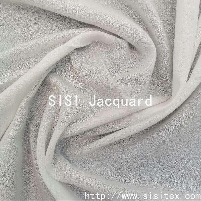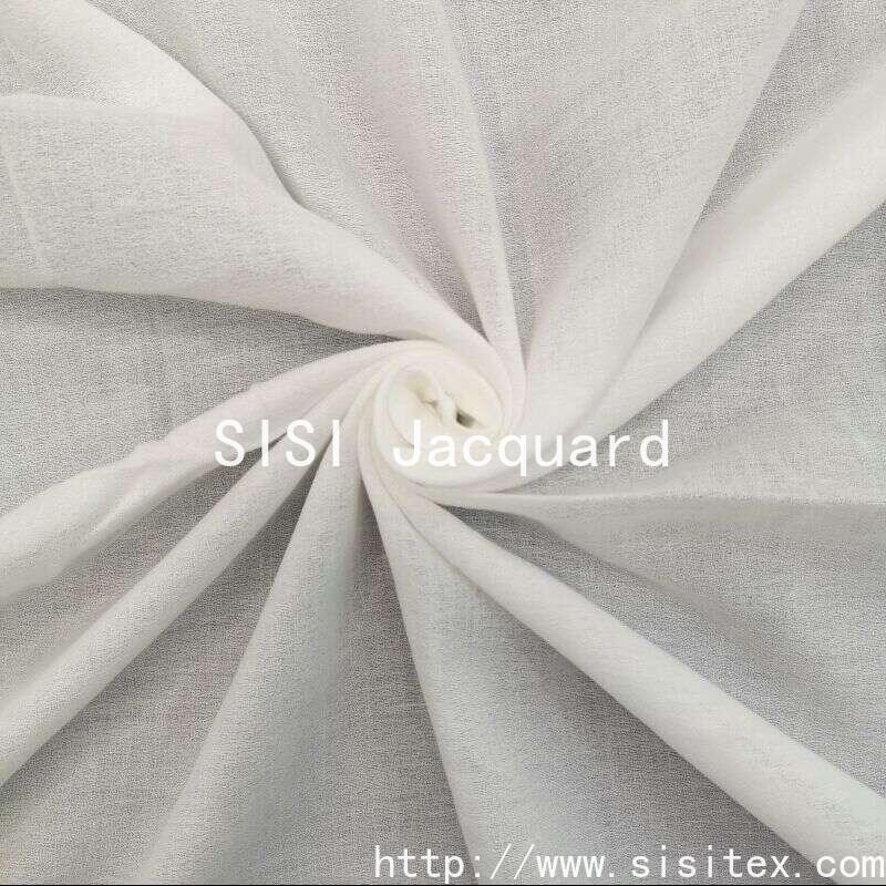 This product is a cotton voile jacquard fabric. It is woven with 40+40/2×40 yarn count and 97×63 density. By combining traditional voile structure with modern geometric jacquard technology, the fabric presents a delicate openwork texture and clear pattern patterns. It is made of 100% cotton, soft and skin-friendly, with excellent breathability. The weight is 119g/m², lightweight and naturally drapes. It is in a classic white color, with a modern and simple geometric jacquard design, highlighting the Japanese and Korean style. It is suitable for women's clothing such as shirts, halter tops, dresses, and light and transparent home wear. It is a fabric that combines aesthetic craftsmanship and practical functions, especially suitable for light and thin styles and layered wear in spring and summer.