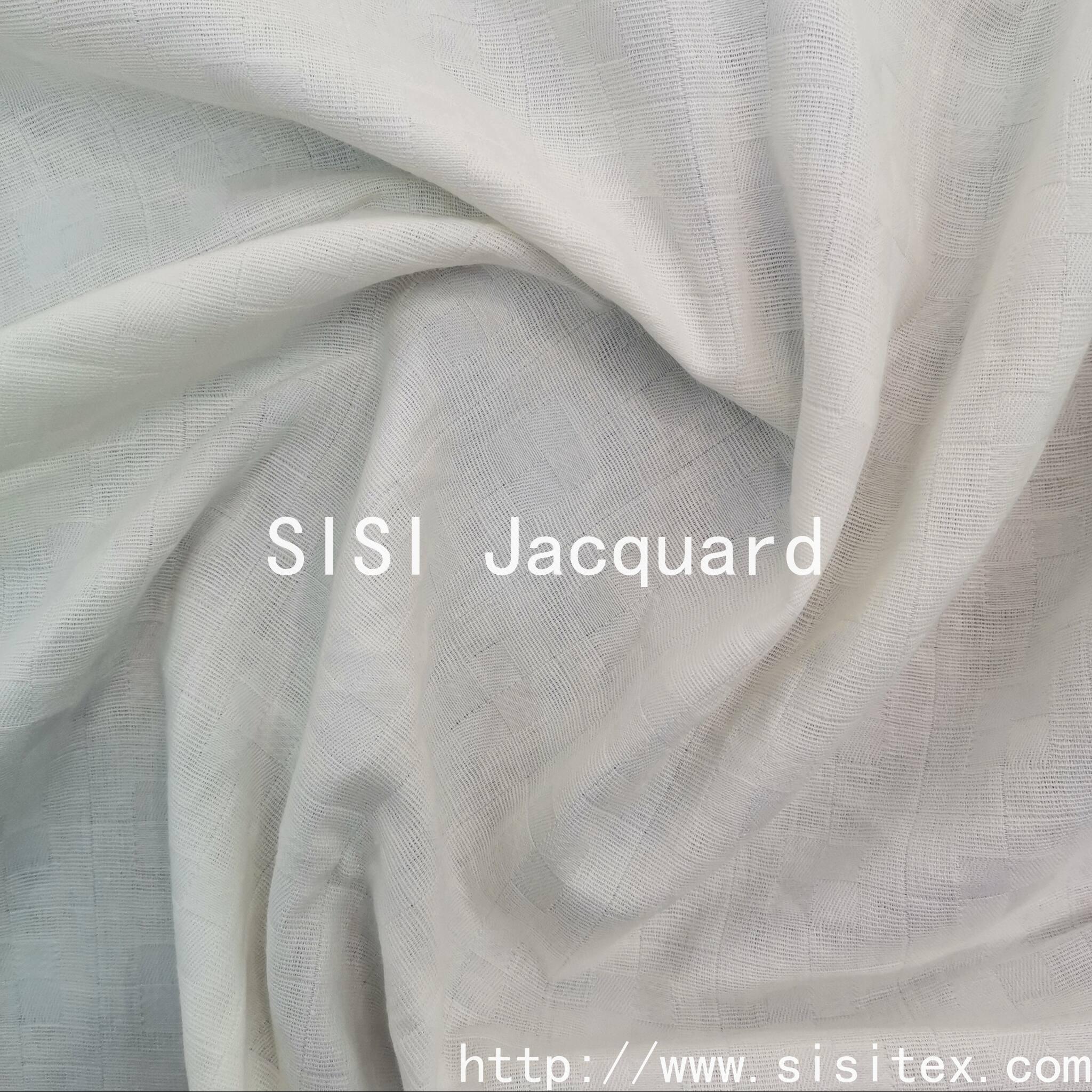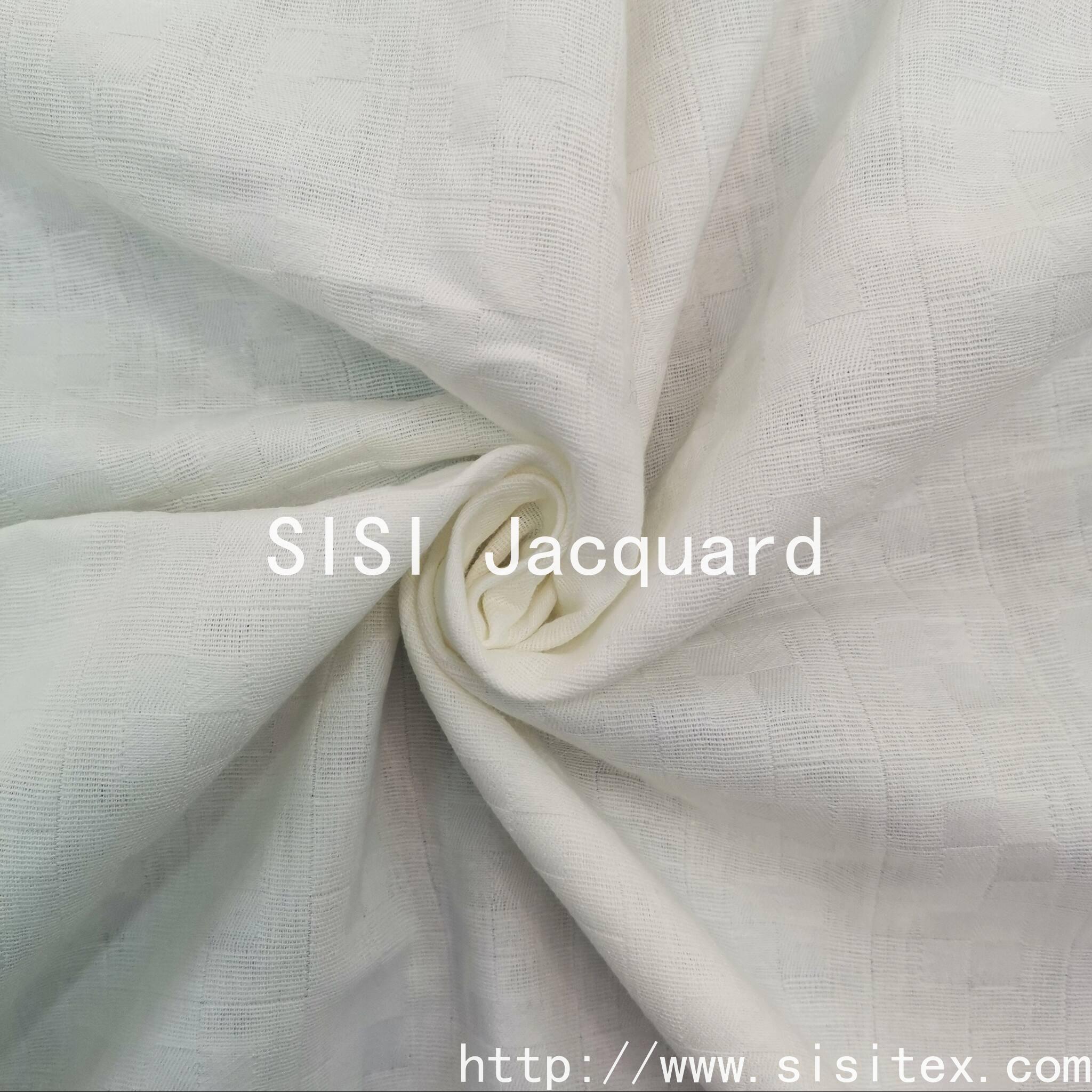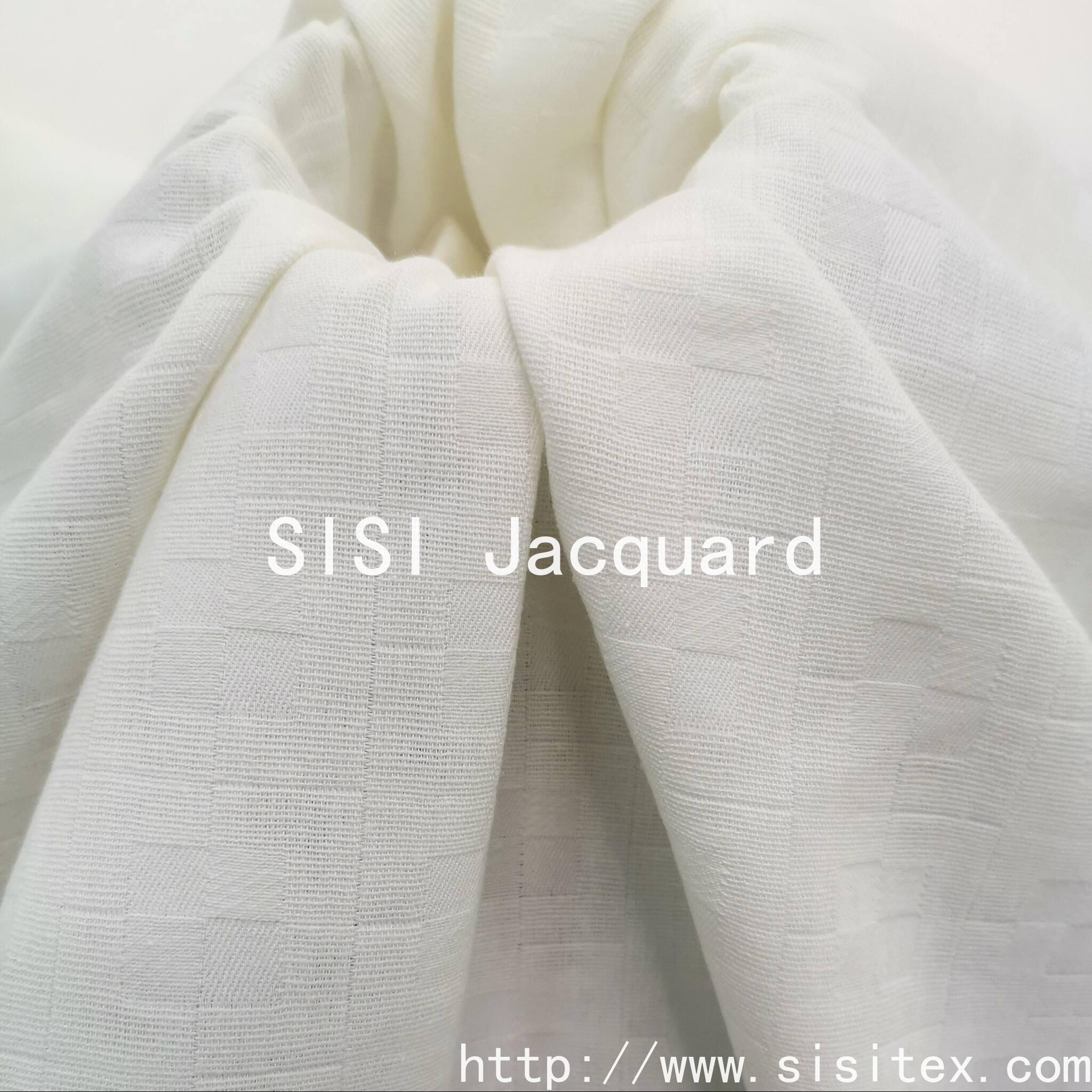 This product is made of 100% cotton geometric check jacquard fabric. It is woven with C40 and C16 yarns, with a density of 144×66 and a weight of 179g/m². The fabric is thick, dense, and has a crisp and stylish appearance. The geometric jacquard pattern is clear and three-dimensional, with rich texture layers. Both the visual effect and the feel are excellent. The fabric is 100% cotton, soft and skin-friendly, breathable and environmentally friendly. It is a classic white color, paired with modern geometric checks, presenting a simple yet detailed look, with a distinct Korean-Japanese style. It is suitable for various products such as suits, shirts, dresses, and bedding. It is a medium to high-weight fabric with both design sense and practicality, especially suitable for creating stylish and high-quality winter and early spring styles.