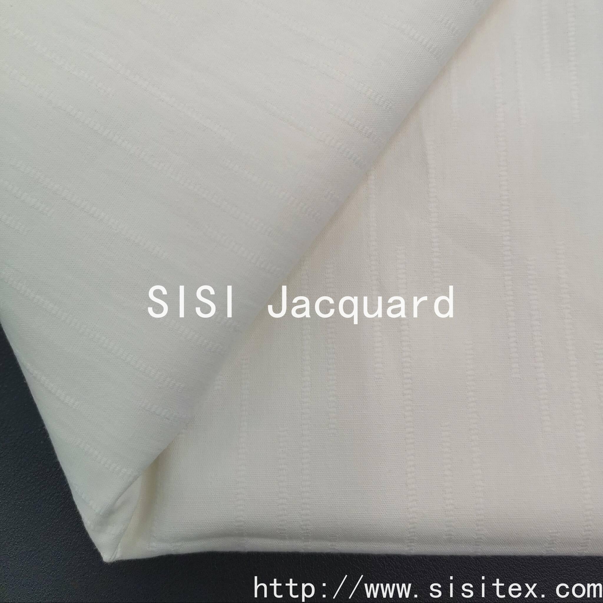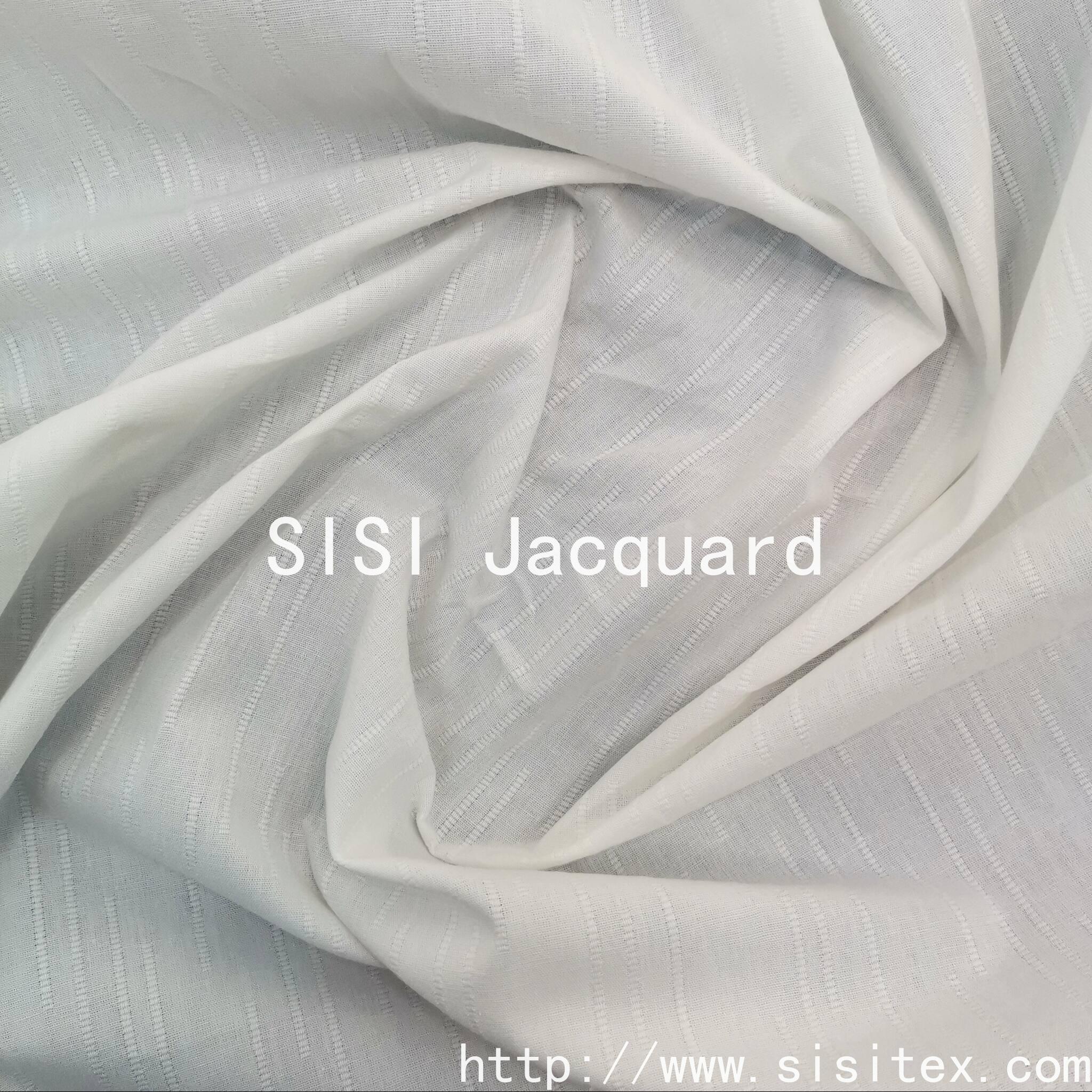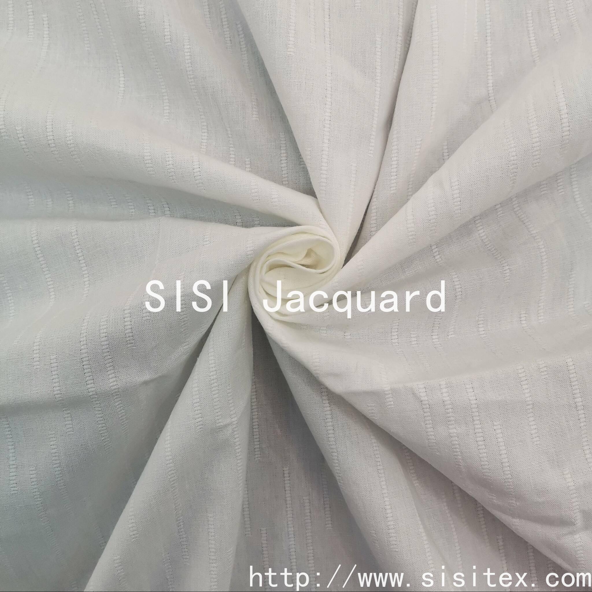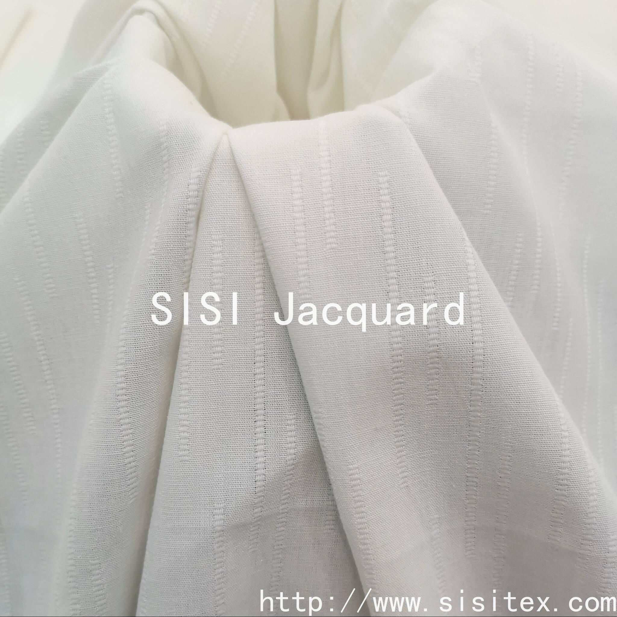 This fabric is made of 100% cotton and is crafted using modern geometric line jacquard technology, resulting in a highly three-dimensional and detailed appearance with clear textures. The fabric density is 115*64, the yarn count is C40*C32, the width is 145cm, and the weight is 116g/m². It has a soft and resilient feel, combined with good breathability and comfort, making it suitable for the production of various daily and fashionable clothing.
