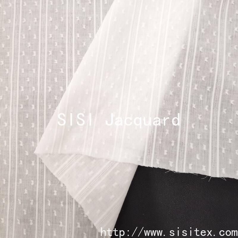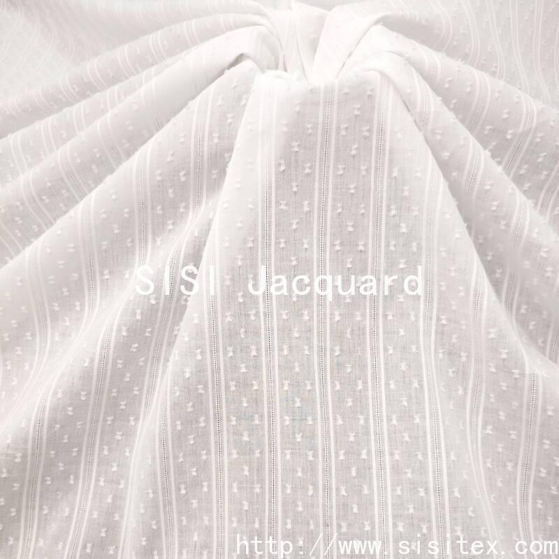 This fabric is made using a 100% cotton muslin weaving process, combined with both jacquard and cutwork techniques, creating a three-dimensional striped texture. The floral pattern is clear and the layers are rich. The fabric density is as high as 127*90, with a yarn count of 60+32/2*60, a width of 145cm, and a weight of only 77g/m². It is lightweight and breathable, with a soft and smooth texture, combining the comfort of cotton with the delicacy of the cutwork technique.