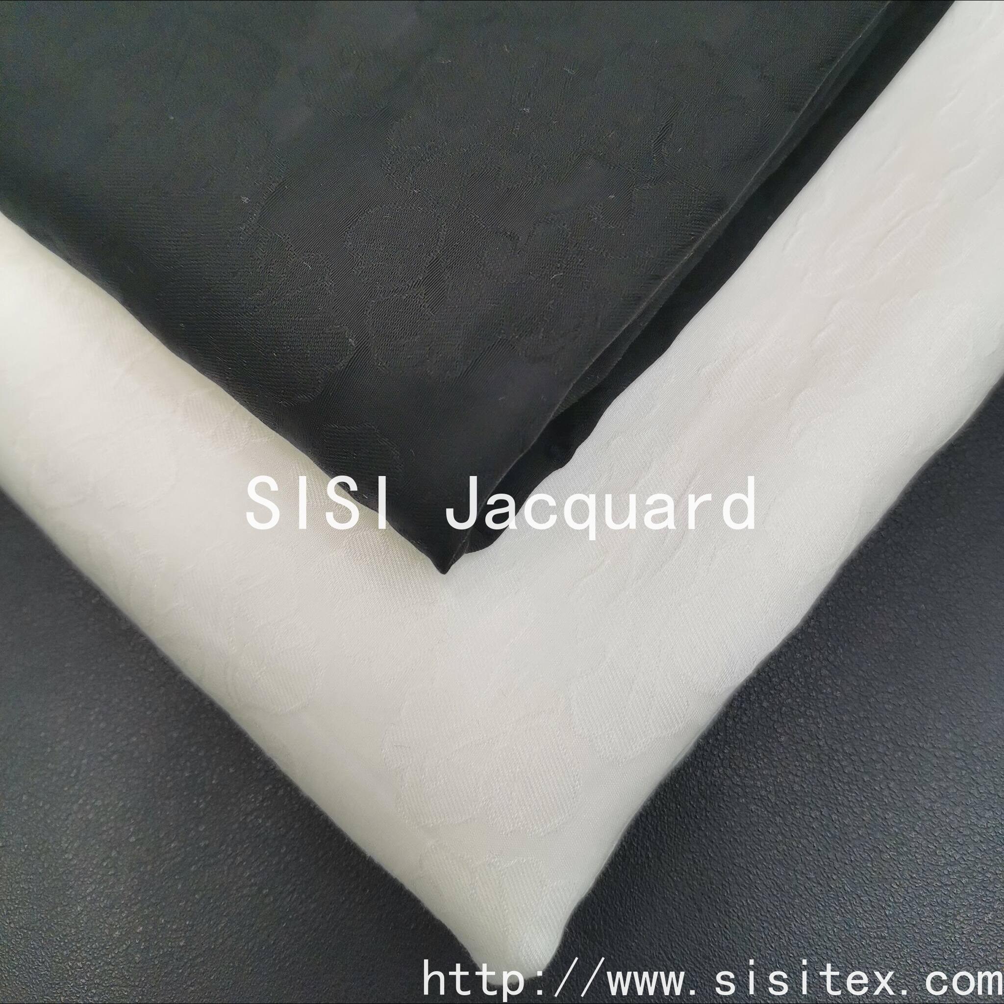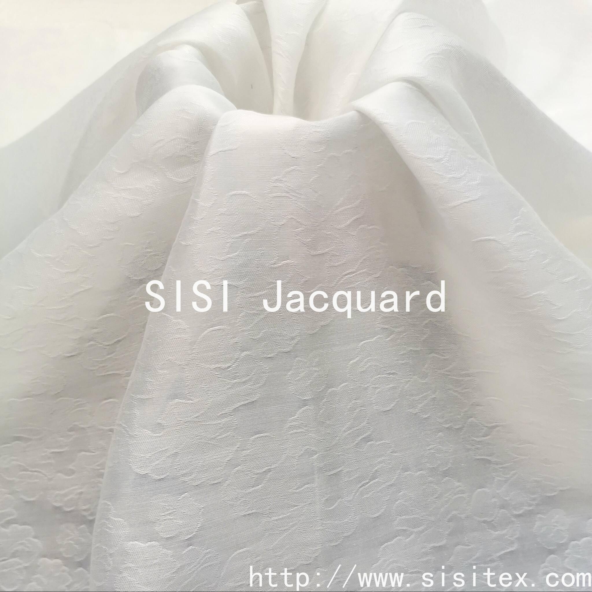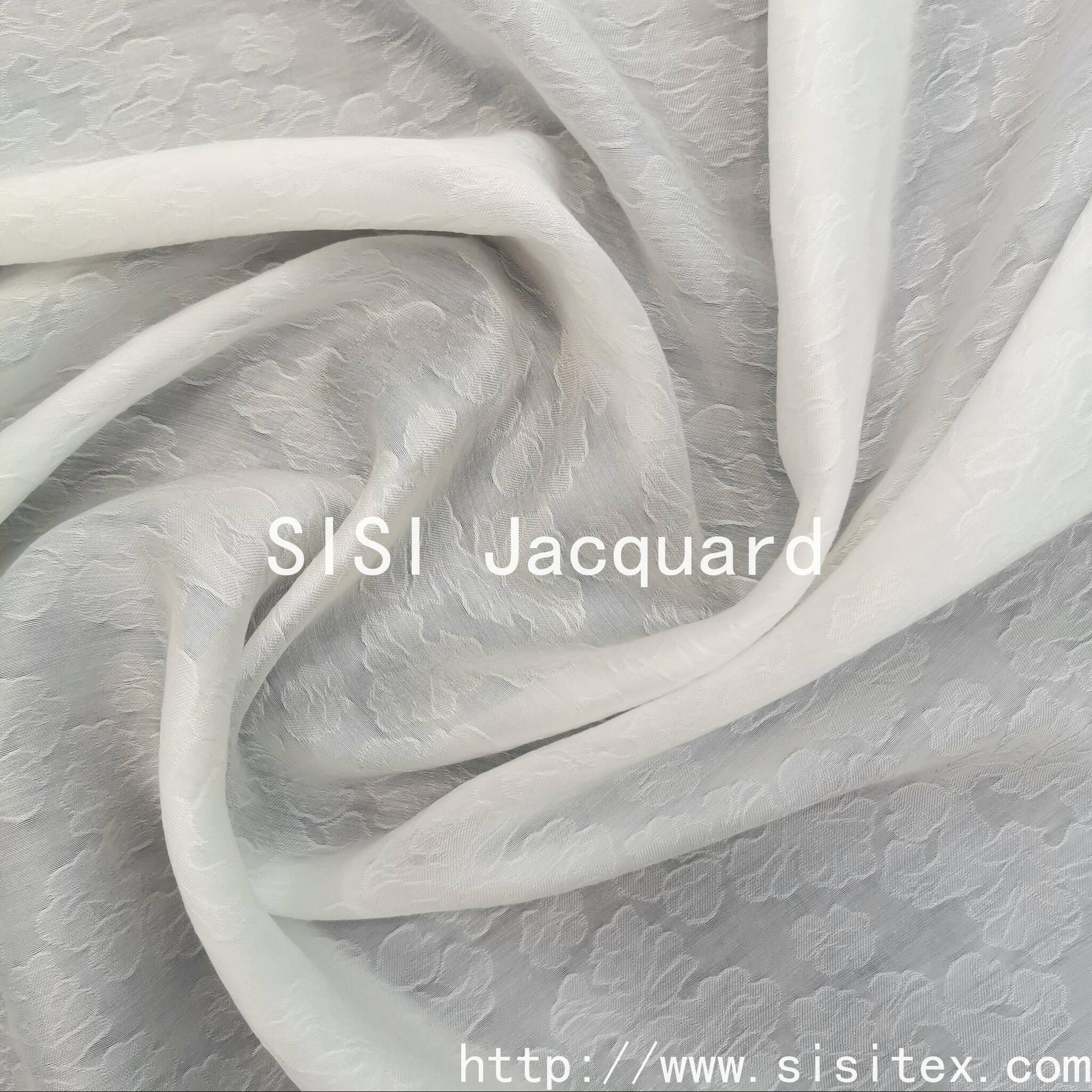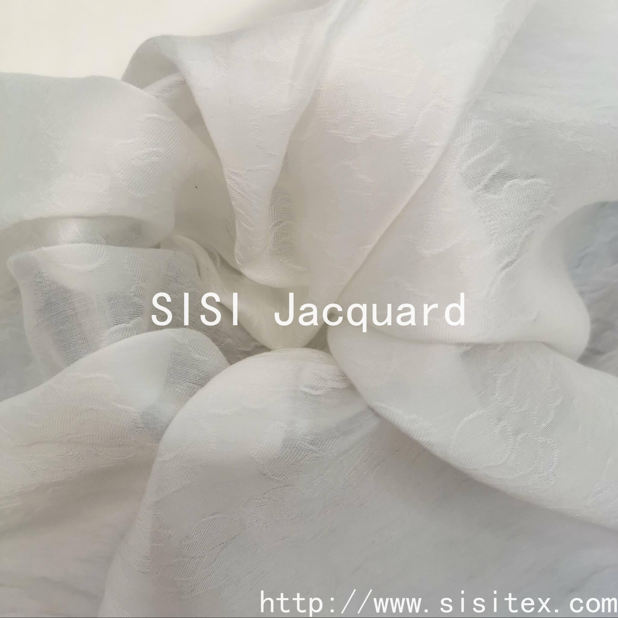 This silk-linen cloud-patterned jacquard fabric is from "Silk Jacquard". It is made from a blend of 86% silk and 14% nylon, with fine yarns and a smooth texture. The fabric features an abstract cloud pattern as its jacquard theme, with the patterns appearing intermittently and undulating continuously, resembling the movement of clouds, presenting a hazy and elegant aesthetic. The weight is 93g/m³, lightweight and breathable yet with a draping effect. The natural luster of silk and the flexible elasticity of nylon complement each other perfectly. It is available in two colors: pure white and deep black. White is like fluffy clouds, while black is like the tranquility of the night sky. The overall style combines retro charm and modern simplicity, exuding an Eastern flavor and poetic atmosphere.