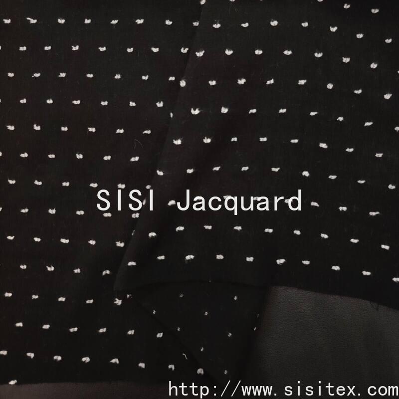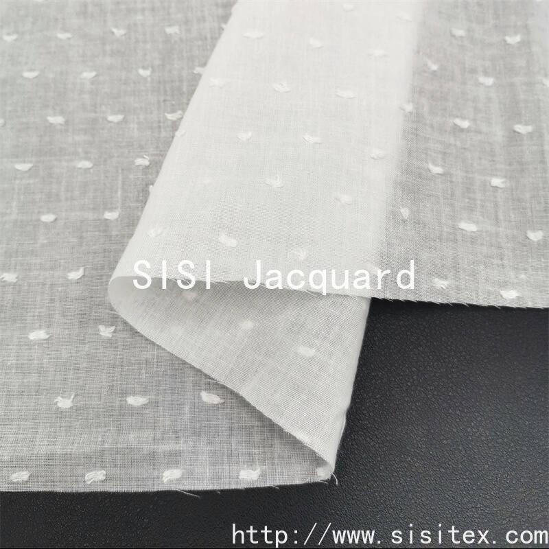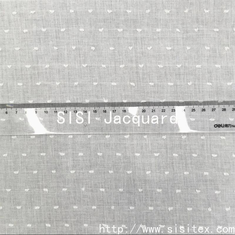 This polyester-cotton jacquard and cut fabric is meticulously crafted by Sisi Textile Co., LTD. It combines high-quality cotton and polyester, retaining the soft and skin-friendly nature of natural cotton while endowing the fabric with superior properties such as lightness, breathability, wear resistance and durability. The surface of the fabric is mainly characterized by delicate point-like jacquard patterns, combined with the cutting technique to create a three-dimensional layering effect. The texture is fine and exquisite, and the touch is soft and comfortable. It is a high-end textile fabric that combines aesthetics and practicality.