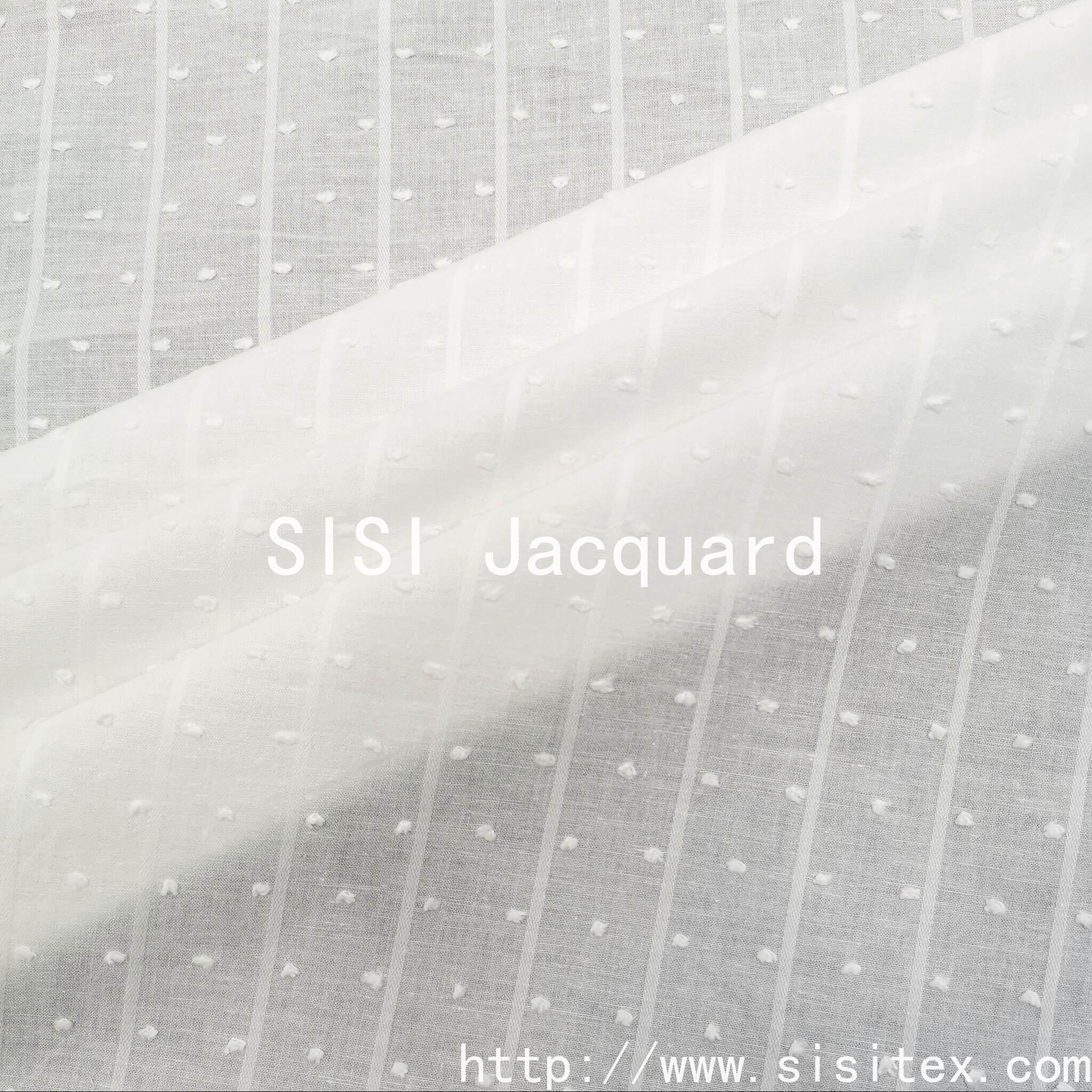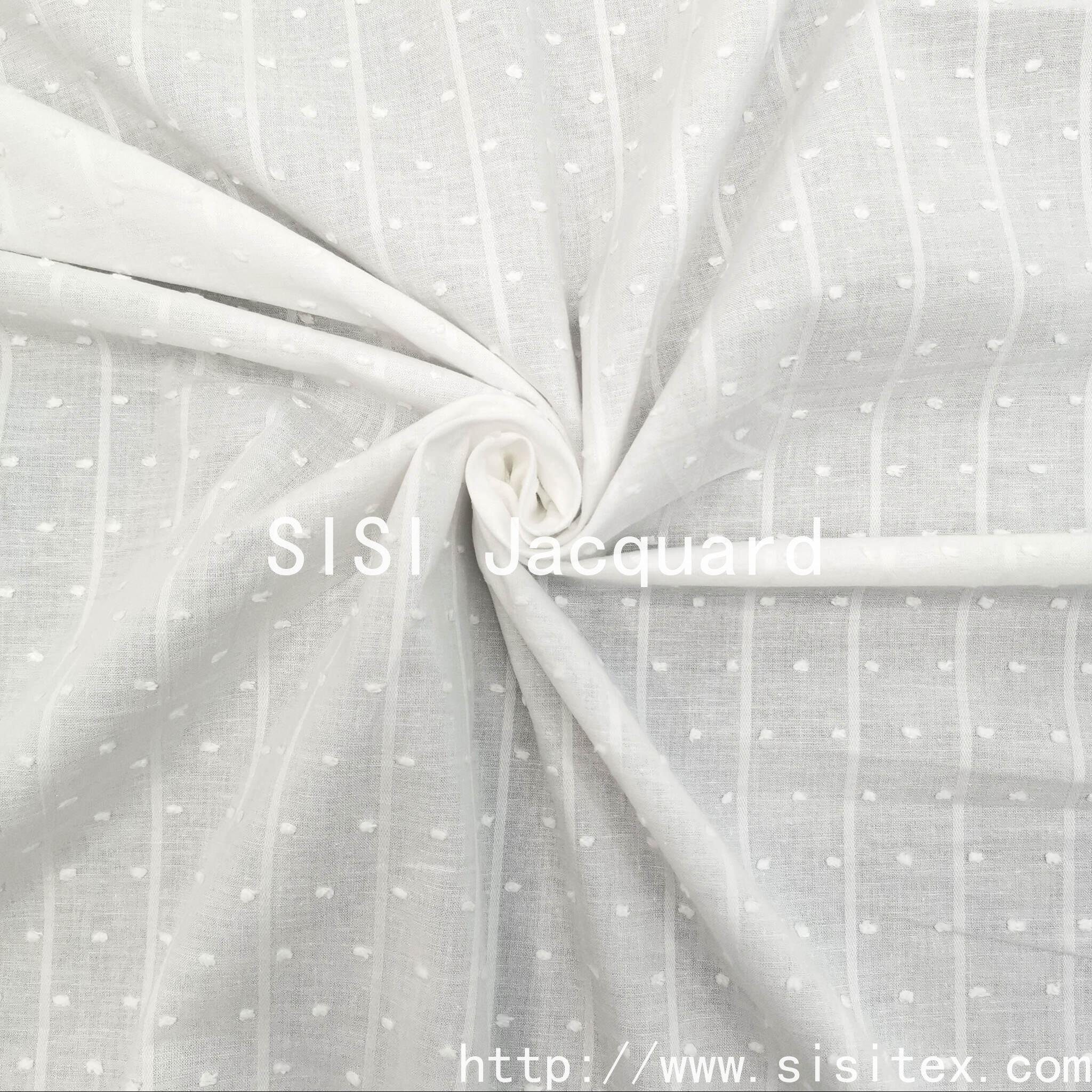 This all-cotton jacquard printed fabric comes from "Fine Jacquard" and is made of 100% pure cotton. It is woven with a 40×40 + 10 yarn count. The texture is delicate and soft. The fabric combines the three-dimensional jacquard printing technique with the exquisite jacquard pattern, creating a vivid and three-dimensional "bouquet" design. Partial areas present a slight relief effect, giving a rich and distinct touch. The density is 100×96, the structure is tight and solid, with a weight of 100g/m². It retains the natural skin-friendly and breathable properties of cotton while also having good drape and stiffness. The solid color base fabric highlights the three-dimensional beauty of the jacquard pattern. The overall style is refined and elegant, combining daily practicality with decorative artistry.