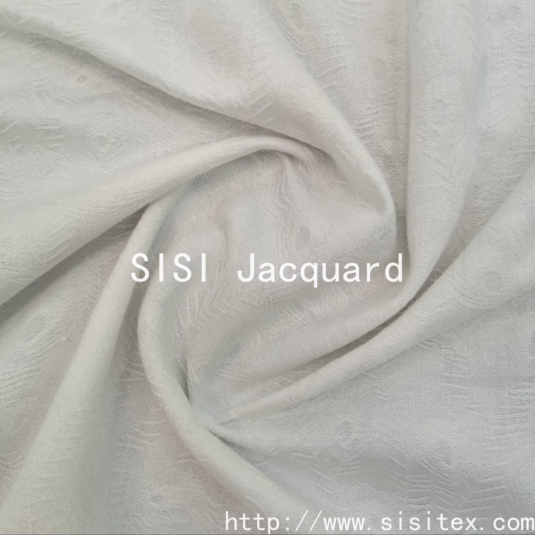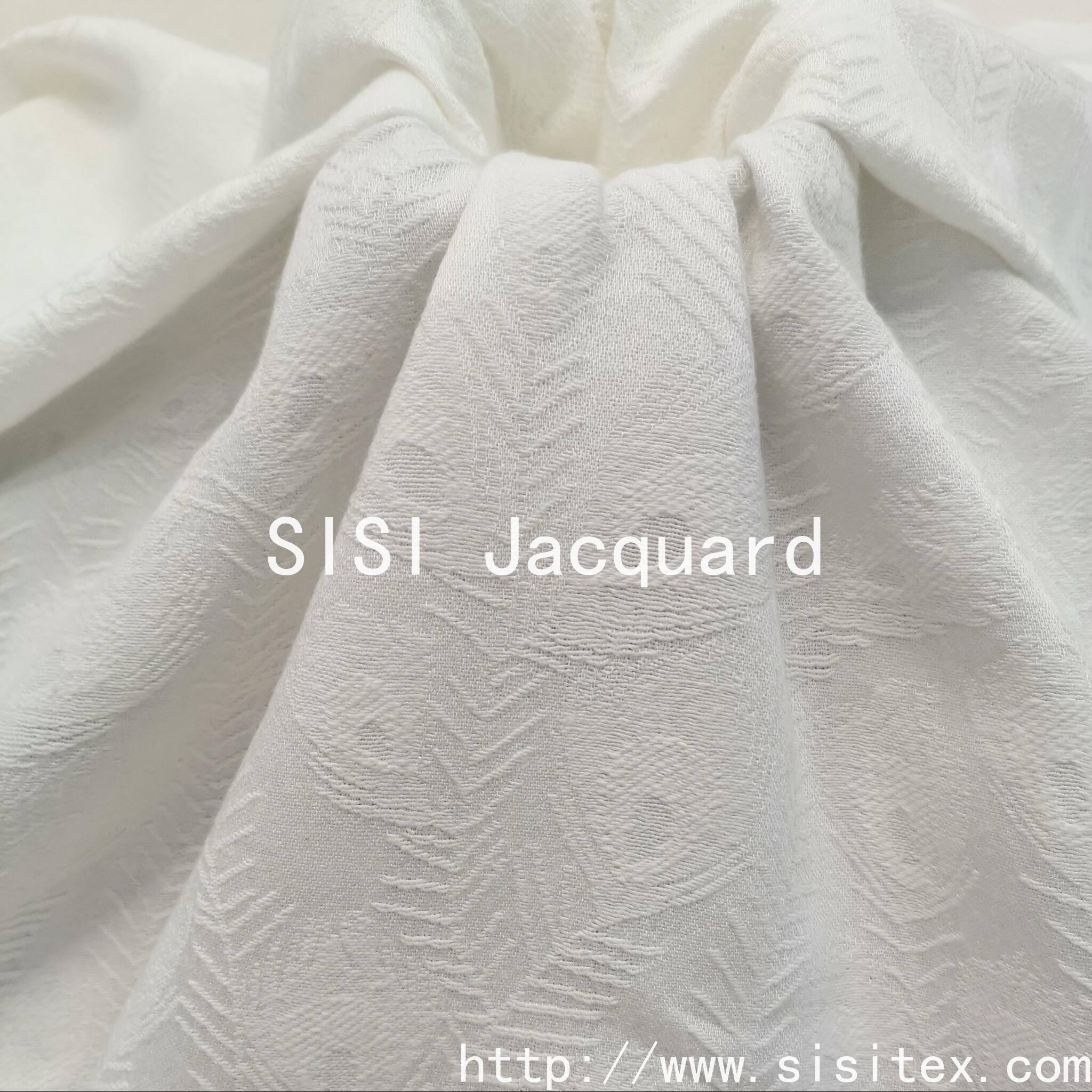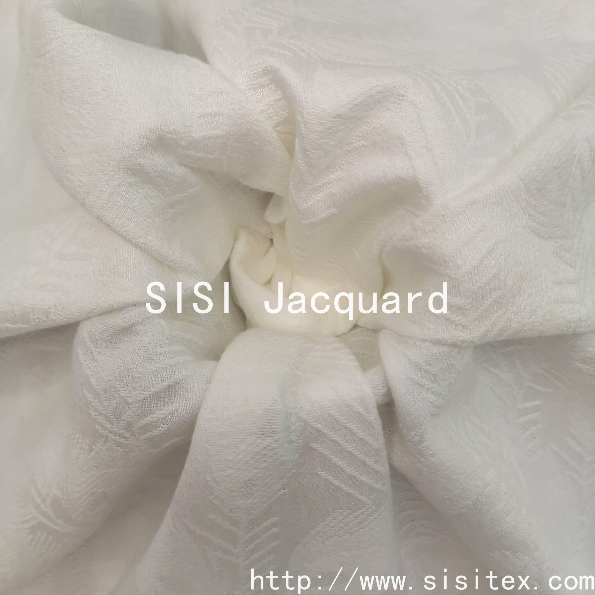 This product is made by precisely weaving 60% cotton and 40% human cotton (viscose fiber) in a golden ratio. It is created through an abstract feather jacquard weaving process, resulting in a pattern with a sense of fluidity and rhythm. The fabric weighs 236g/m², has a width of 145cm, and has a yarn count of R40°C7 and a density of 118*42. It combines the warmth and breathability of cotton with the luster and drape of human cotton. It is thick and sturdy yet soft in texture, and ingeniously blends ethnic style and abstract art. It is suitable for creating autumn and winter products with both texture and style.