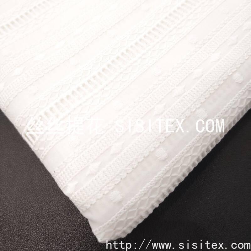 立体质感:绣花线与镂空结构相结合,使面料呈现出丰富的立体感和建筑感肌理,成衣后挺括有型。